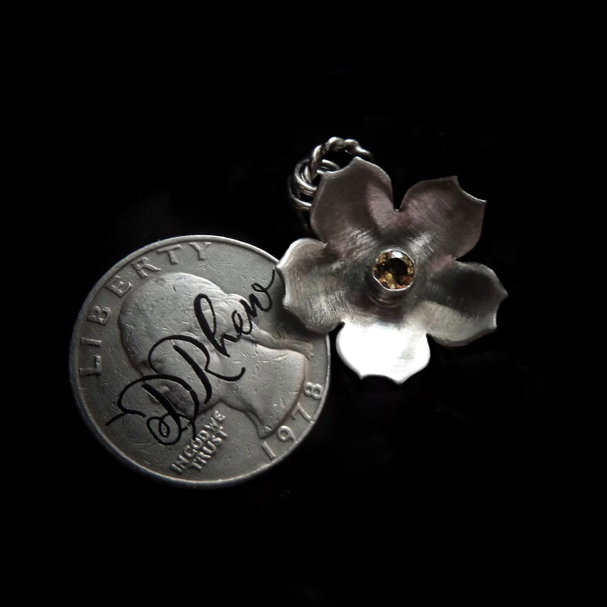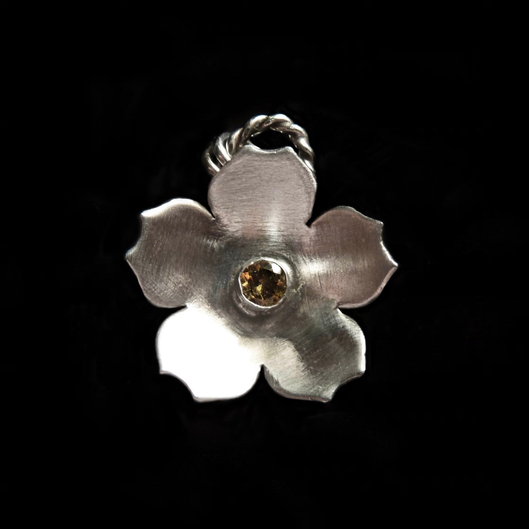 This dimensional Argentium Sterling Silver flower pendant has a sweet little Citrine nestled in its center. Beautiful!