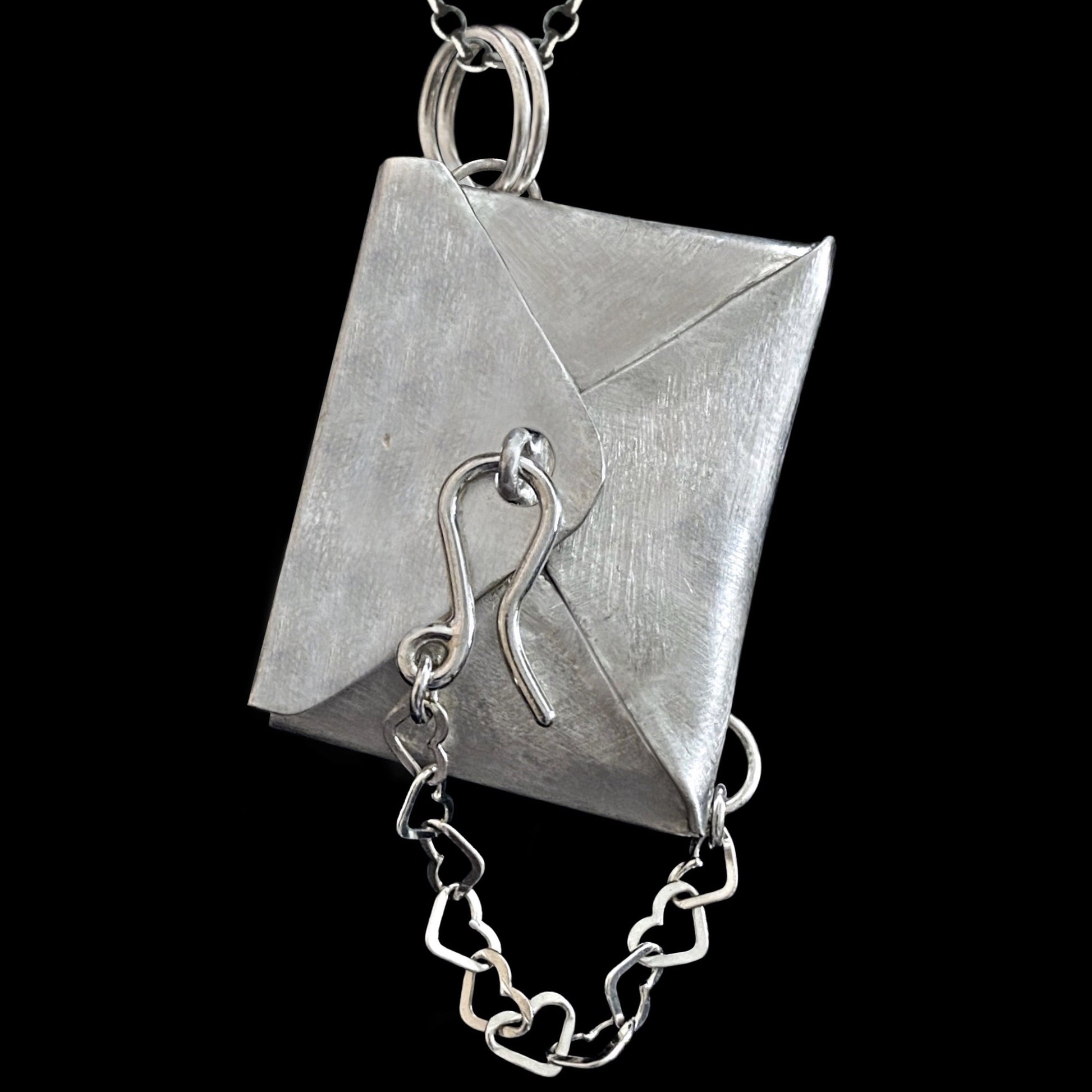 This sweet little envelope locket opens to reveal a slot you can slide a little note or photo into!