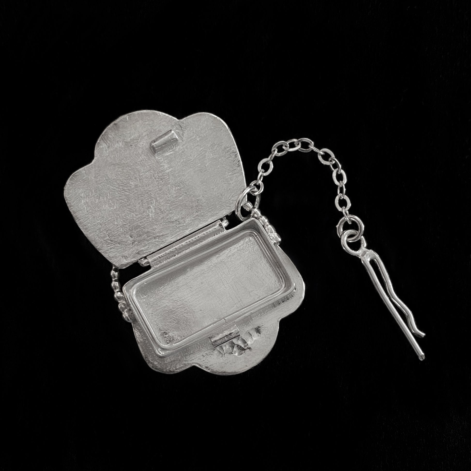 "Hestia" was the first locket in my collection. I wanted to make something feminine and fun so I made this darling little purse that can hold a little something special close to your heart. 👛