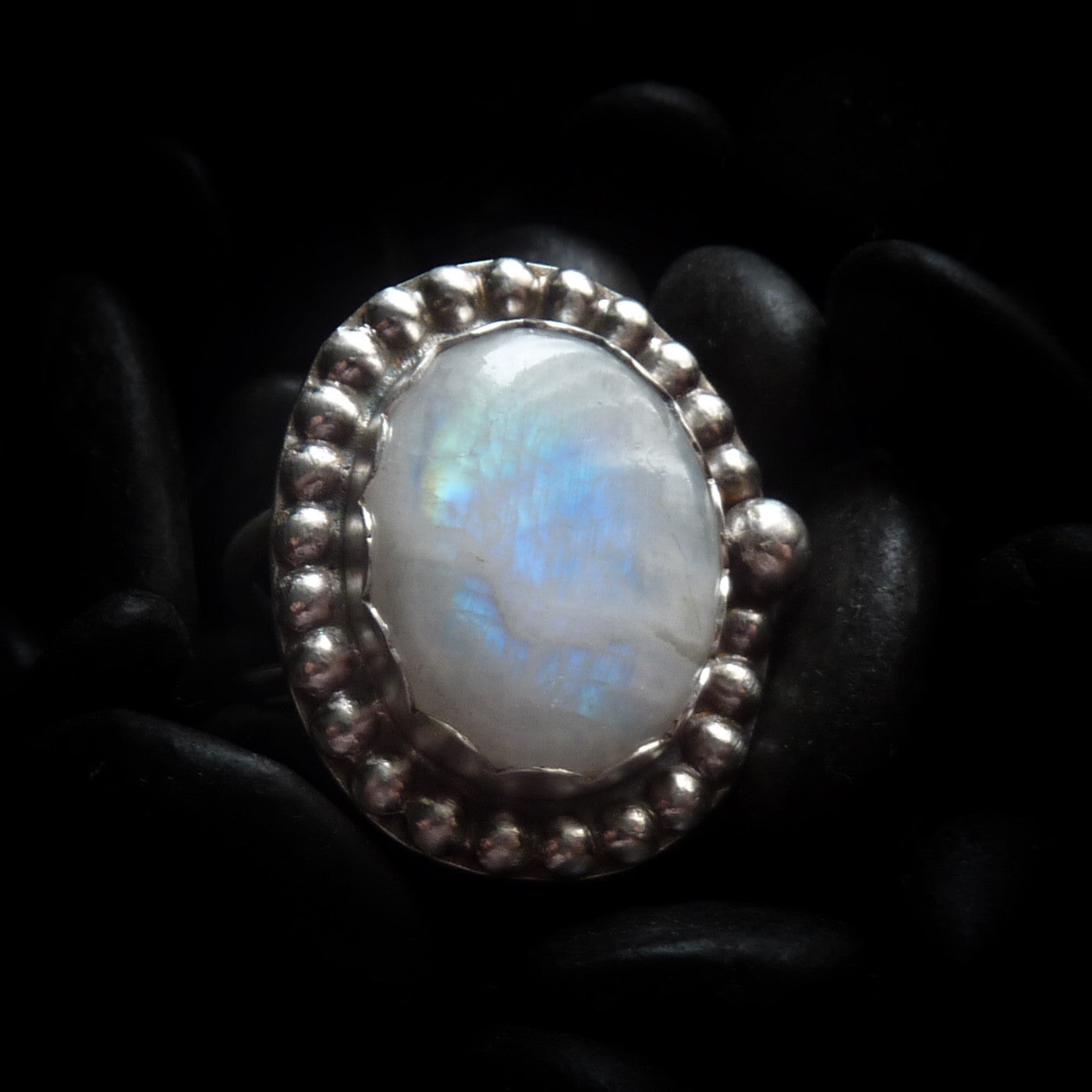 Iria - Rainbow Moonstone & Sterling Silver Ring