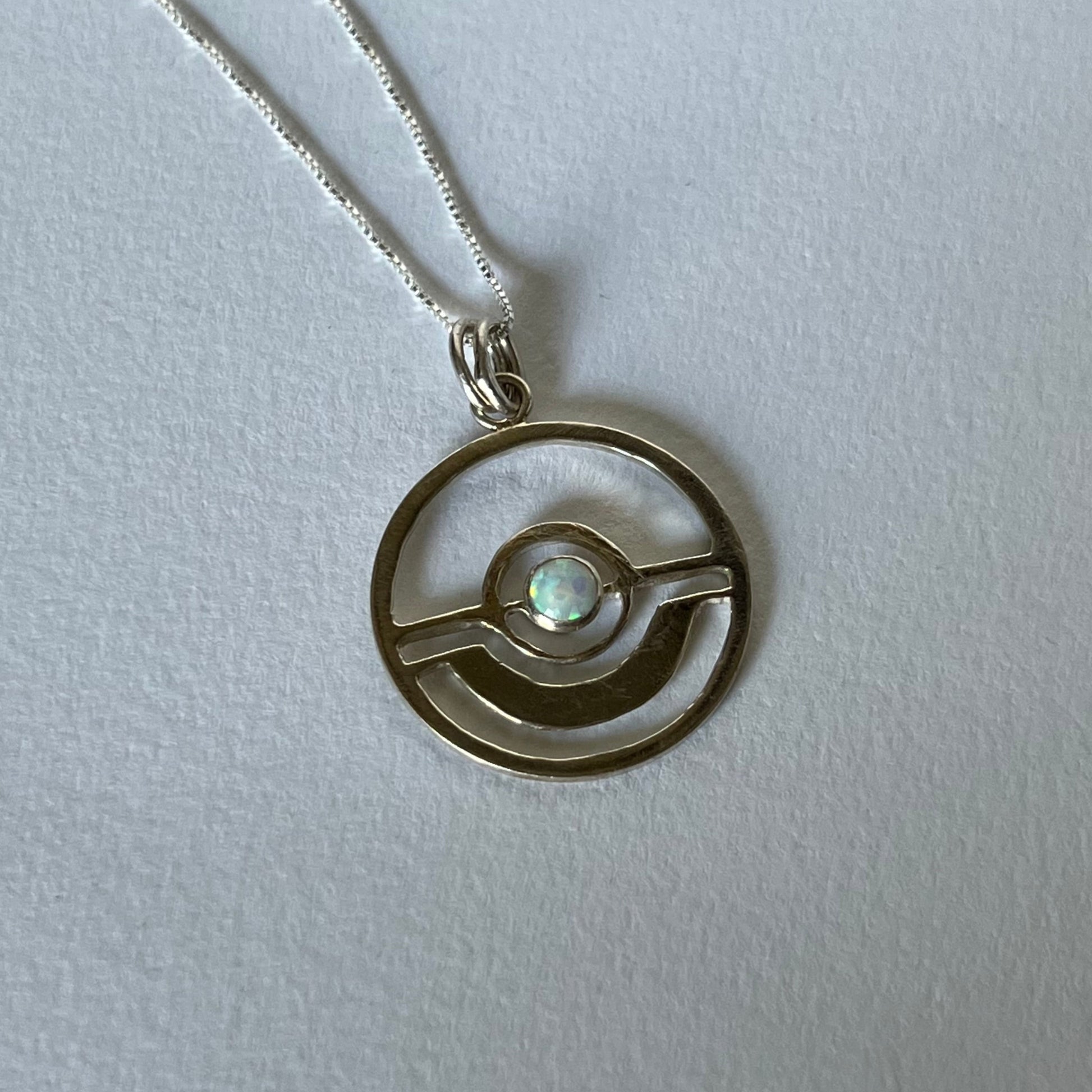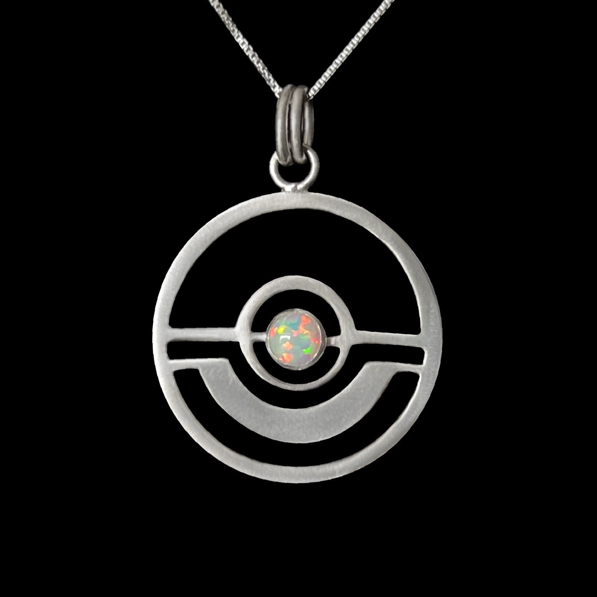 Lab Opal Pocket Monster Ball Sterling Silver Necklace