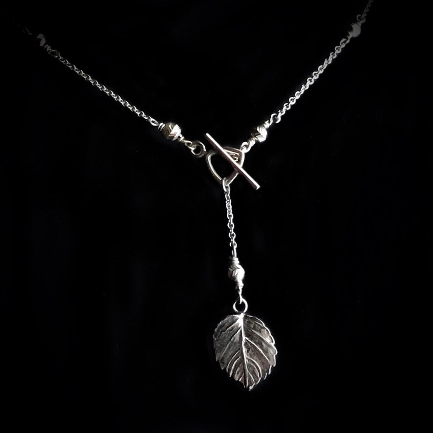 Phyllis - Sterling Silver Lariat Leaf Necklace