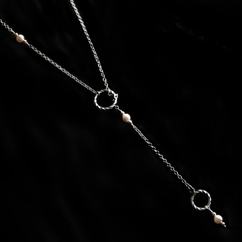 “Disa” is an elegant Sterling Silver and Swarovski pearl lariat necklace.⚪️