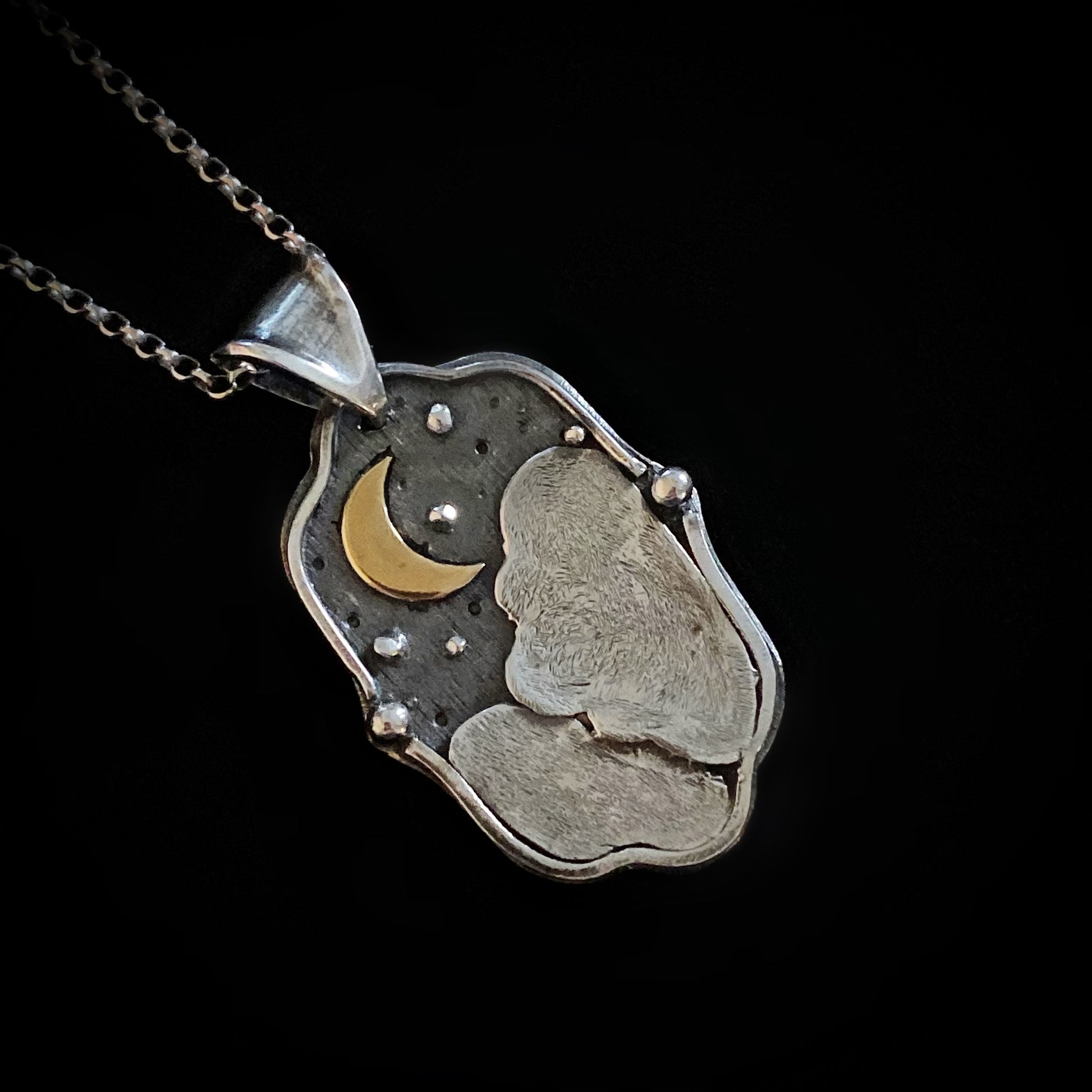 I created this Sterling Silver Moonscape with a tiny brass moon for a fellow lover of the night.