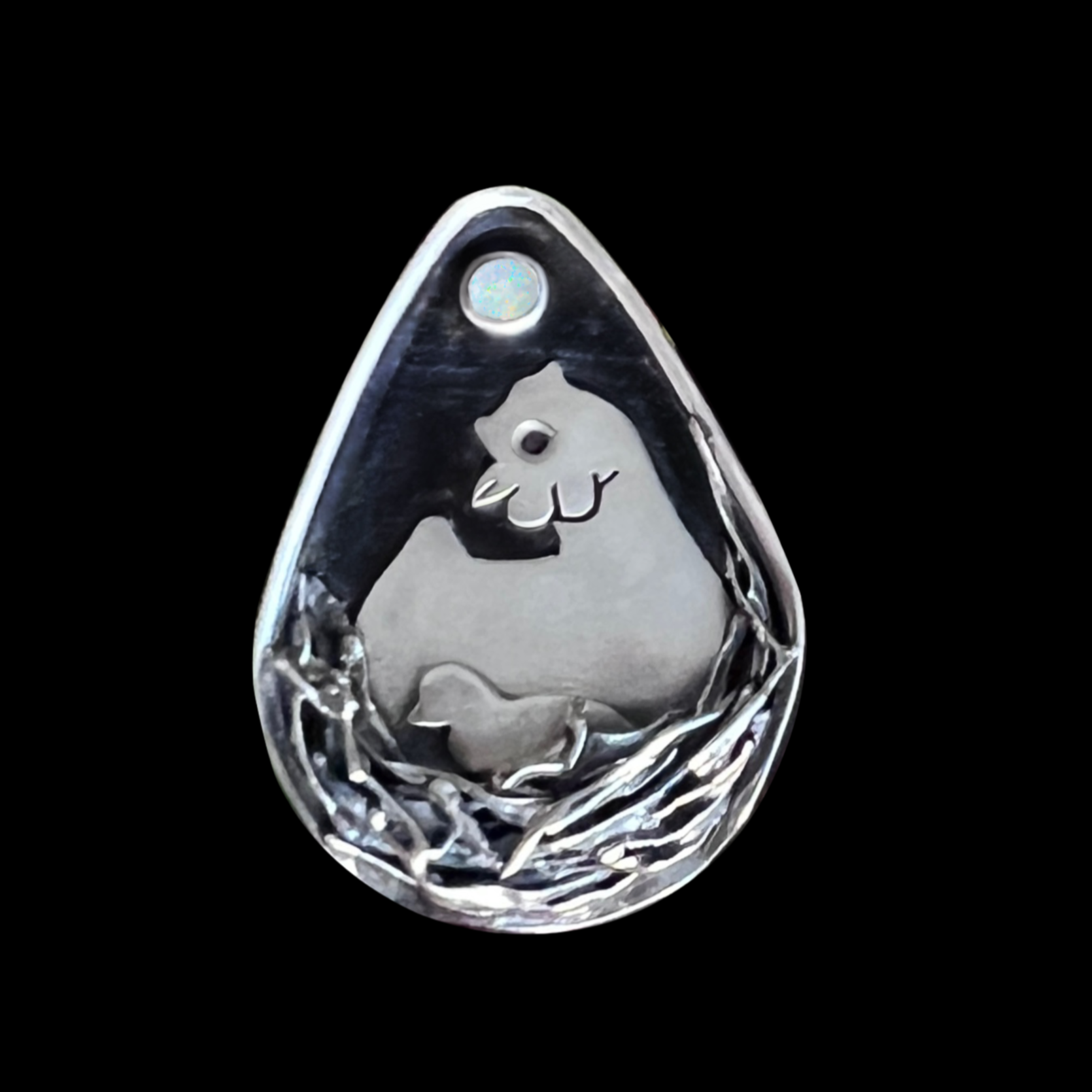 "Maya" Lab Opal & Sterling Silver Chicken Hen Chick Necklace