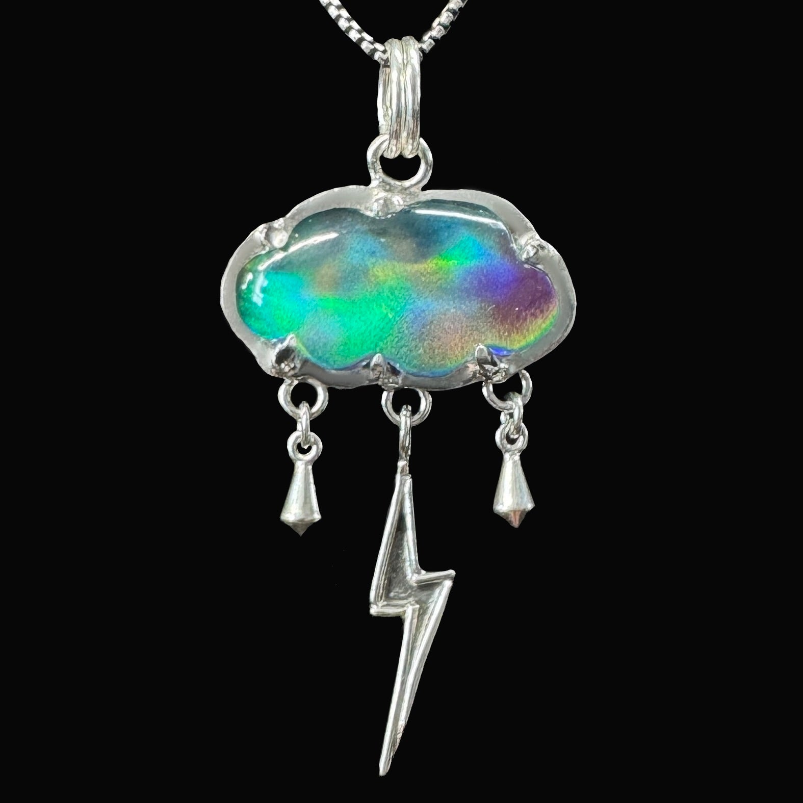 "Raiden" Aurora Opal & Sterling Silver Necklace