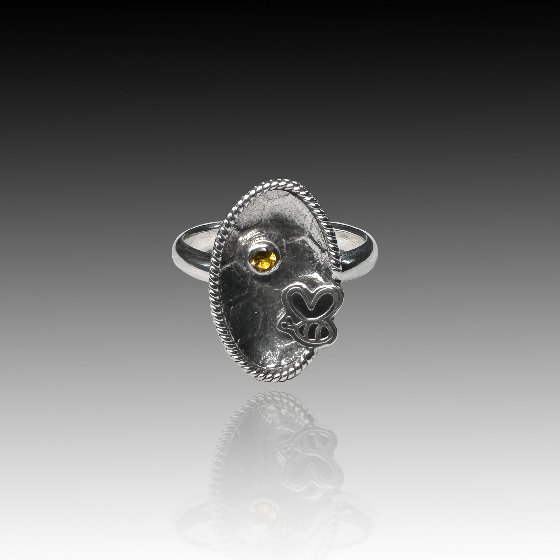"Shana" Honeycomb and Bee Citrine and Sterling Silver Ring