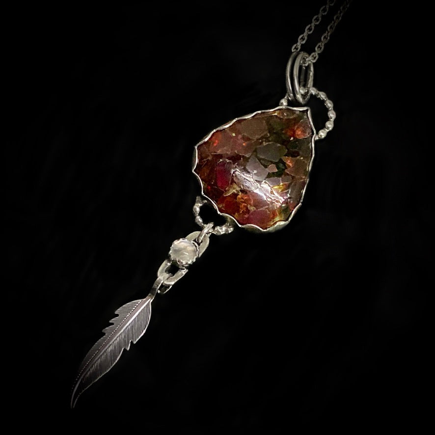 Shattered - Garnet Composite & Sterling Silver Feather Necklace