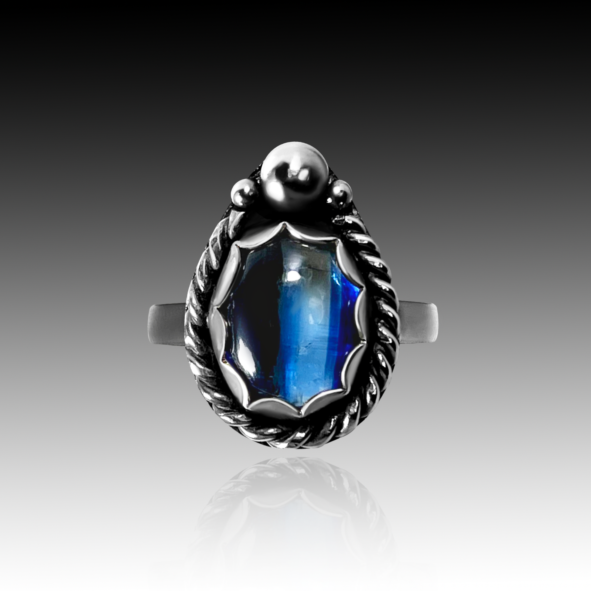 Unleash your bold spirit with our size 8.5 Kyanite and Sterling Silver Ring—a fearless statement of style and individuality.
