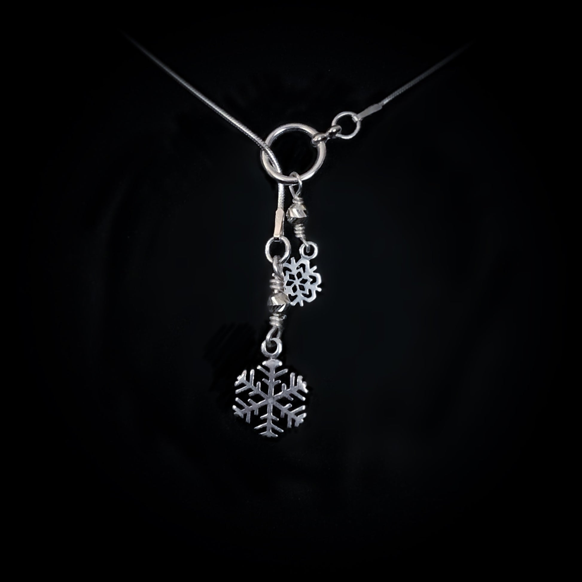 Sterling Silver necklace that ends in a loop threaded with snowflakes.