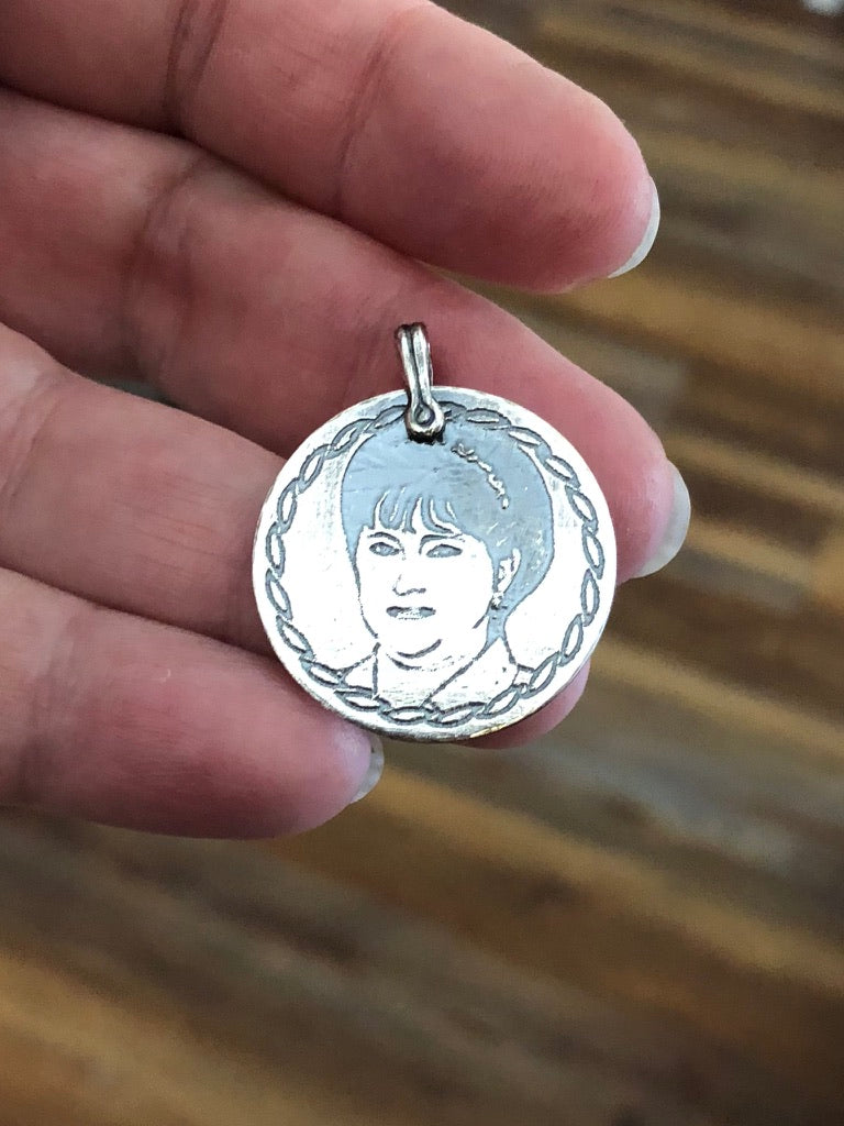 Custom Etched Sterling Silver Portrait Necklace
