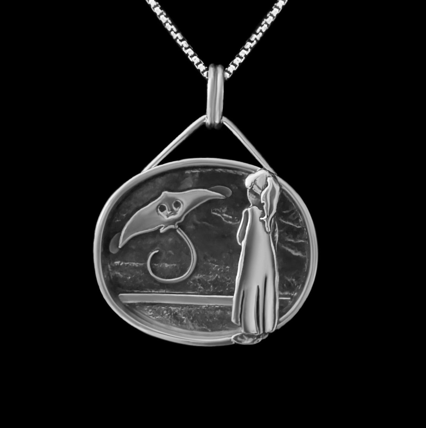 "Syretia" Sterling Silver Girl & Stingray Necklace