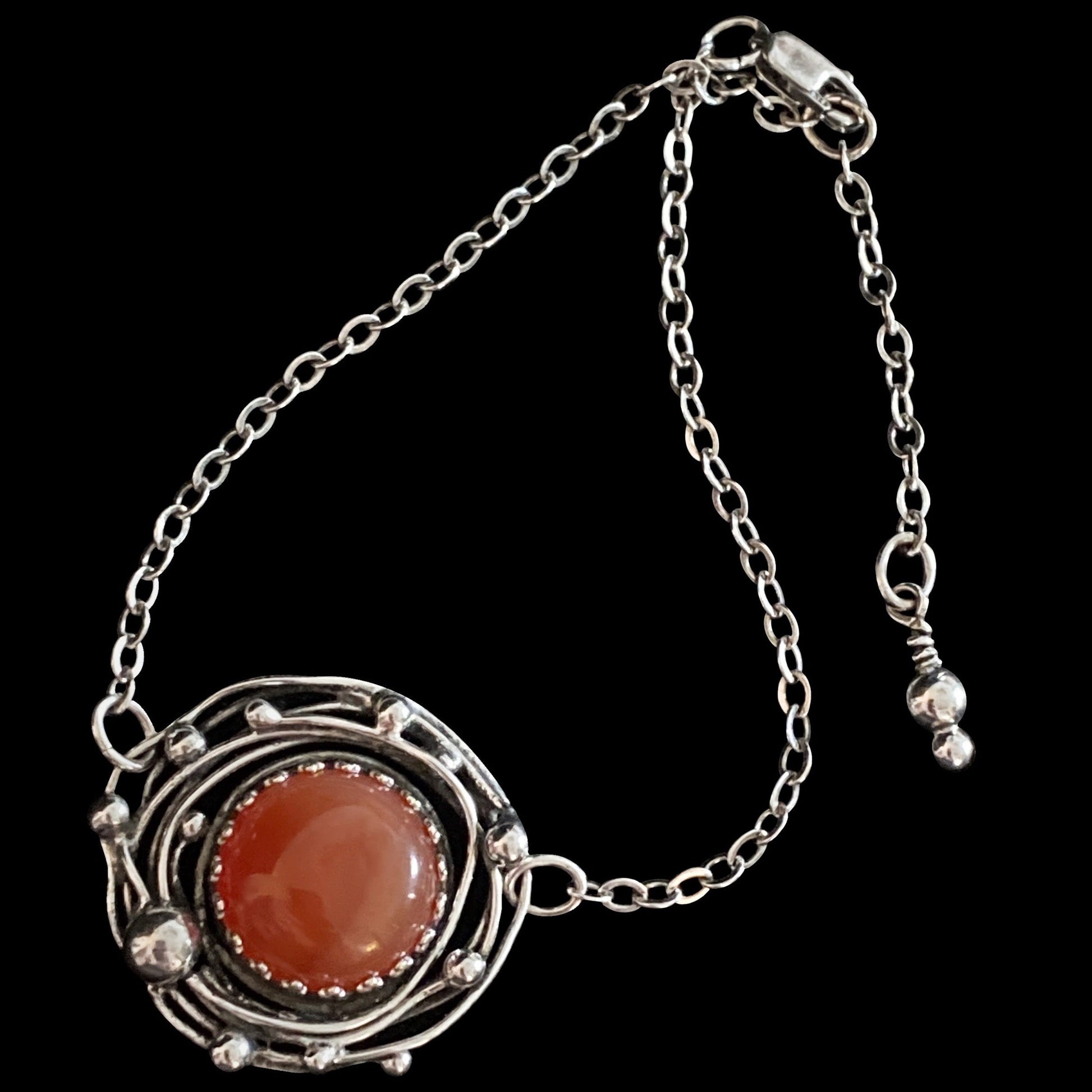 Stunning carnelian is surrounded by a galaxy of Sterling Silver.